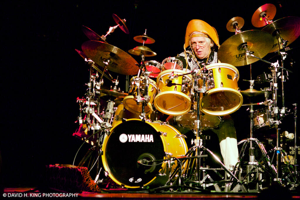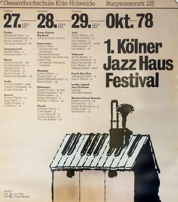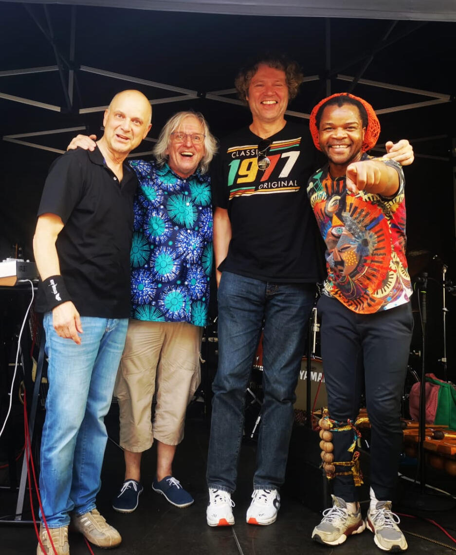 (Prof. Siegfried Busch, Berlin)... Zum Schluss, als alle Schleusen des Jubels bereits ebenso weit geöffnet waren wie die Kellerbühne für die jungen “Reinschmecker”, griff Schlagzeuger Michael Küttner, der lange Zeit in Afrika gelebt und gelernt hat, noch einmal zu den Stöcken und zeigte den Wanderern zwischen Rock und Pop, Synthie-Sound und Rap, was eine Harke ist: Ein 20-minütiges Solo auf dem Schlagzeug ließ alte Erinnerungen an Ginger Baker aufkommen, den Jungen wie den Alten fielen bei offenem Mund fast die Ohren ab - grenzenloser Jubel!